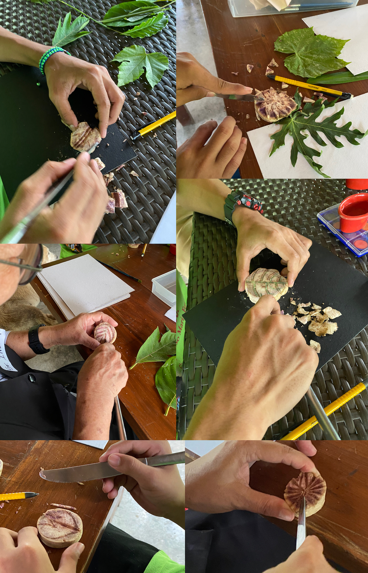 The hormiguitas sharing their ongoing projects with me, plus demonstrating some appliqué and embroidery techniques.